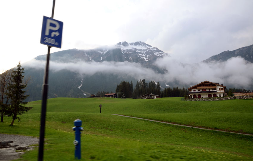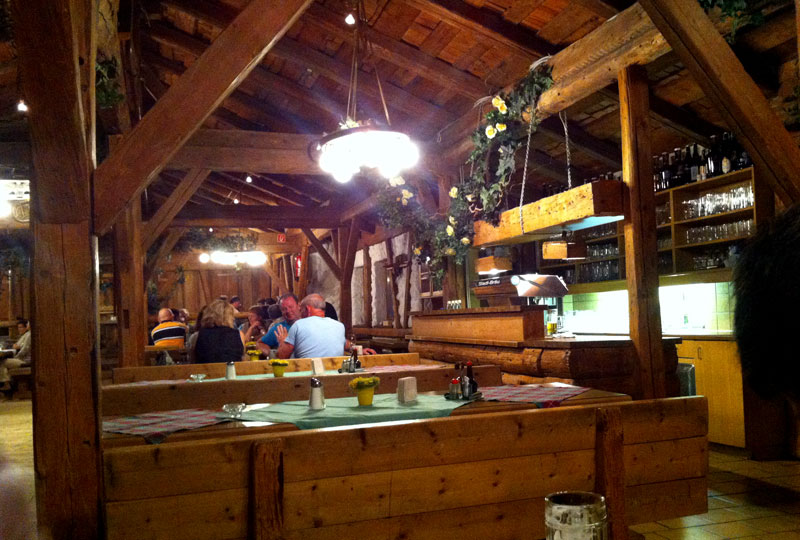 พวกเราจัดการที่พัก ซักผ้าเสร็จเรียบร้อย จึงเดินออกมาหาอะไรกินมื้อเย็นกันครับ 2 ทุ่มครึ่งแล้ว ที่นี่ไม่ค่อยมีร้านอาหารเท่าไหร่เพราะเป็นเมืองเล็กๆ และดึกแล้วด้วยครับ (แต่ยังไม่มืด) เราเดินไปไม่นานก็เจอร้านอาหารของโรงแรมค่อนข้างใหญ่ของเมืองพอดีครับ แต่งร้านในสไตล์ไม้คล้ายๆ กับบ้านเรือนที่นั่น เราสั่งอาหารฝรั่ง ไม่แน่ใจว่าอาหารเยอรมันหรือออสเตรีย มากินกัน 4-5 อย่างพร้อมกับเบียร์ ราคาทั้งหมด 65 Euro กินเสร็จมีว๊อดก้าให้คนละเป็ก ช่วยให้เจริญอาหารด้วยครับ เรากินกันนาน กว่าจะเสร็จออกจากร้านมาก็มืด บนถนนไม่มีรถวิ่งเลยครับ ฝกตกปรอยๆ น้ำในรางระบายน้ำไหลเร็วมาก เนื่องจากพื้นที่บริเวณนี้เป็นเขาสูงชัน พวกเราเดินเล่นพักนึงแล้ว กลับโรงแรมที่พัก อาบน้ำนอนกับตามระเบียบครับ