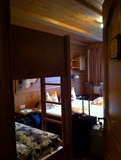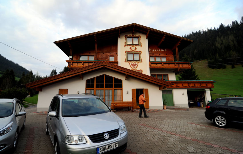 เมือง Berwang (อ่านว่า เบอแวง) เป็นเมืองเล็กๆ ของการเล่นสกี อยู่ใกล้กับยอดเขา Zugspitze ในเจอมันนี้ เมืองนี้อยู่สูงจากระดับน้ำทะเลยประมาณ 1300 เมตร ท่ามกลางภูเขาหิมะ ผมจอง Guest house ชื่อ Gästehaus Alpenblick ซึ่งเป็นบ้านสไตล์ Austria หลังใหญ่พอสมควร เราจองห้องนอนใหญ่นอนได้ 5 คนมีห้องน้ำตัว อยู่ชั้น 4 ซึ่งเป็นชั้นบนสุดของบ้าน ราคาห้องพักคนละ 21 Euro (รวมอาหารเช้า) ถูกและดีจริงๆ ครับ เรามาถึงที่นี่ประมาณ 2 ทุ่ม ฟ้ายังไม่มืดครับ ฝนตกปรอยๆ ได้ยินเสียงวัว เสียงแกะร้อง ต้อนรับการมาเยือนของพวกเรา พวกเรา check in เข้าห้องพักกับเจ้าของบ้าน ที่รอต้อนรับเราอย่างเป็นกันเอง เค้านึกว่า พวกเรา 5 คนมากันเป็นแบบครอบครัว พ่อแม่ ลูก จึงเตรียมที่นอนลายลูกวัวให้ น่ารักจริงๆ ครับ นอกจากนั้นเจ้าของคิดค่าบริการซักผ้า เพียง 10 Euro รวมผงซักฟอกใส่เสื้อผ้าลงในเครื่องอบแห้ง และบริการส่งเสื้อผ้าให้เราถึงห้องในตอนเช้าวันรุ่งขึ้น