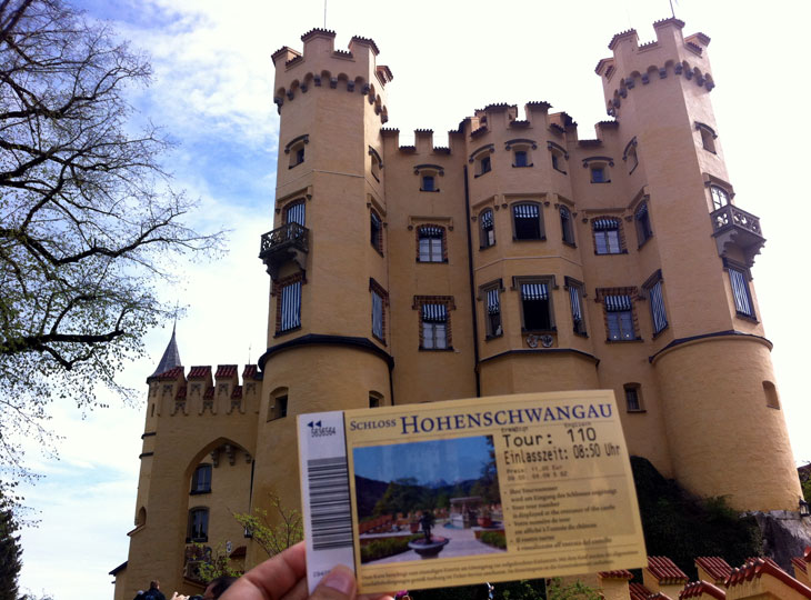 หากท่านต้องการเที่ยวชมภายในปราสาท Hohenschwangau และปราสาท Neuschwanstein อยากแนะนำให้เดินทางไปถึง Ticket office แต่เช้า (ไม่เกิน 8.30 น.) จะไม่เสียเวลารอคิวในการซื้อตั๋วเข้าปราสาททั้งสองนานครับ ทาง Ticket Office มีกฏว่าเวลาเข้าประตูปราสาททั้งสองต้องห่างกันอย่างน้อย 2 ชั่วโมง เนื่องจากการเข้าชมภายในปราสาททั้งสองใช้เวลาประมาณ ปราสาทละ 45 นาที และต้องเสียเวลาเดินทางระหว่างปราสาททั้งสองประมาณ 30-60 นาที จึงควรเผื่อเวลาให้ดีนะครับ