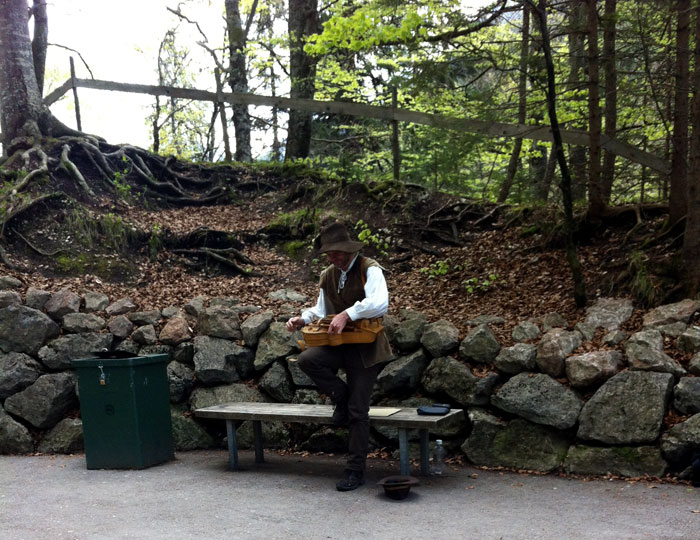 ปราสาท Neuschwanstein หรือบางคนเรียกว่าปราสาทเทพนิยาย ที่นี่เป็นสถานที่เที่ยวอันดับ 1 ของเจอมันนี ปัจจุบันมีนักท่องเที่ยวแวะเวียนมาชมภายในปราสาท ปีละ 1.3 ล้านคน ความงดงามภายในคงไม่สามารถเขียนเรียบเรียงได้ถูกต้องครบถ้วนได้ ต้องมาดูมาชมด้วยตัวเอง หลังจากเข้าชมปราสาทที่ห้องโถงใหญ่ซึ่งเป็นห้องสุดท้ายเสร็จแล้ว จะมีร้านขายของที่ระลึกภายในตัวปราสาท 2 ร้านครับ ร้านแรกจะขายของคุณภาพดี ราคาแพง และถัดมาเป็นร้านขายของ ราคาถูกกว่า คุณภาพดีใกล้เคียงกัน หลังจากซื้อของติดไม้ติดมือเสร็จแล้ว เราเดินออกจากตัวปราสาทแล้วเดินกลับไปที่จุดลงรถบัส จากนั้นเราเดินขึ้นเขากันต่อเพื่อเดินไปยังสะพานเชือก แล้วถ่ายวิวตัวปราสาท สวยงามมากทีเดียว ระหว่างทางเดินขึ้นเขาได้ยินเสียงดนตรีพื้นเมืองจาก begger ทำให้บรรยากาศมีชีวิตชีวาเพิ่มขึ้นมาไม่น้อย เด็กๆ ที่เดินเหนื่อยๆ ชอบใจกันใหญ่ครับ