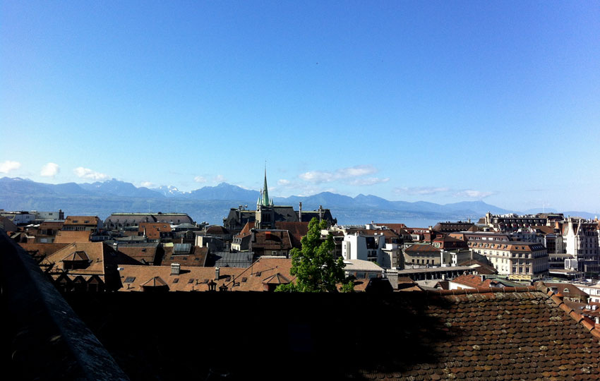 | รูปที 2 : วิวเมือง Lausanneและทะเลสาบ Geneva เมื่อมองจาก มหาวิหารโลซานน์ |
