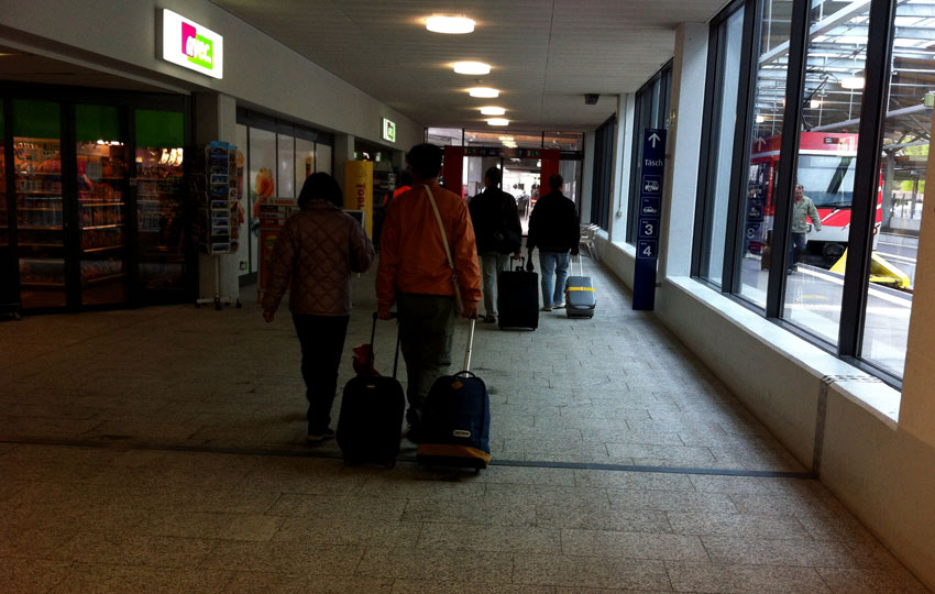 เราเดินออกจากโรงแรมประมาณ 8 โมงครึ่ง ตามถนนไม่ค่อยมีคนเท่าไหร่ครับยังเช้าอยู่ ระหว่างทางพวกเราเจอพวกรถบรรทุกหนัก รถเก็บขยะ รถเหล่านี้เป็นรถที่ใช้น้ำมัน ที่ได้รับการยกเว้นสามารถวิ่งในเมืองนี้ได้ครับ ซึ่งมีเพียงไม่กี่คัน ถึงแม้เมืองนี้จะเป็นเมืองเล็กๆ แต่ดูจำนวนหลังคาเรือน ผมว่ามีมากทีเดียวครับ บ้านเรือนที่นี่แต่ละหลังมีประมาณ 3-5 ชั้น ถ้าคนอยู่ที่นี่กันเต็ม คงจะแออัดกันพอสมควรครับ แต่เดินผ่านๆ บ้านบางหลังไม่มีคนอยู่ เหมือนจะเป็นบ้านพักตากอากาศกัน พวกเราเดินผ่านถนนสายหลักของเมือง แวะดูของตามร้านค้าต่างๆ ซื้อเป็นที่ระลึกติดไม้ติดมือกลับไป แล้วเดินไปขึ้นรถไฟที่สถานี ผู้โดยสารไม่เยอะเพราะยังเช้าอยู่ครับ เราเลือกที่นั่งตามใจชอบได้เลย ขากลับผมรู้สึกว่ารถวิ่งเร็วกว่าขามาครับ วิ่งมาแปล็บเดียวก็ถึงเมือง Täsch แล้ว เราลากกระเป๋าไปเอารถที่จอดไว้ในที่จอดรถของโรงแรมที่อยู่ติดกับสถานี การบริหารเรื่องที่จอดรถที่นี่หรือที่อื่นๆ เค้าไม่ใช้คนเลยครับ เราไปจ่ายเงินที่ตู้แล้วสอดบัตรจอดรถเข้าไป แล้วจึงเดินไปที่รถขับไปที่ทางออกของอาคารจอดรถ เสียบบัตรจอดรถเข้าไป ไม้กั้นก็ยกขึ้น ขับรถออกได้ สะดวกดีครับ