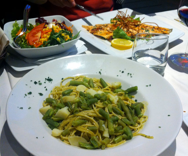 | รูปที่ 9 : สปาเก็ตตี้กับสเต็กปลาจากทะเลสาป Como |