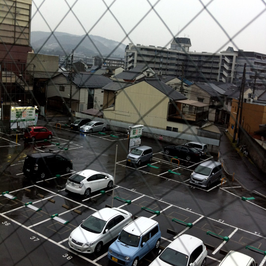 | รูปที่ 1 : บรรยากาศในเกียวโต ตอนเช้า มองจากหน้าต่างห้องพักใน Piece Hostel Kyoto |
