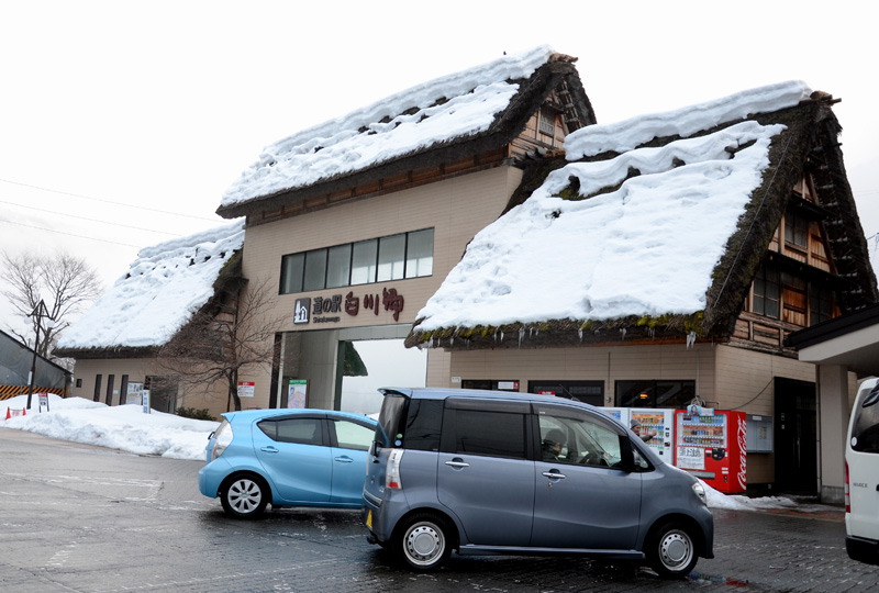 บนทางด่วนในญี่ปุ่นมีจุดพักรถ ร้านค้า ห้องน้ำสะอาด(มาก) เฉลี่ยประมาณทุกๆ 50 กิโลเมตร การขับรถบนทางด่วนที่นี่จึงสะดวกสบายมาก พวกเราขับบนทางด่วนประมาณ 2 ชั่วโมงเข้าสู่เชต Gifu เราเริ่มเจอหิมะสองข้างทาง และเมื่อเข้าสู่เมือง Shokawa หิมะหนาขึ้นมาก สองข้างทางขาวโพลนไปหมดแต่ไม่มีหิมะจับบนถนน จึงขับได้สบาย ก่อนถึง Shirakawago เราลงทางด่วนจ่ายค่าทางด่วนไป 5,800 เยน โหดจริงๆ สำหรับการขับรถบนทางด่วนระยะทางประมาณ 250 กิโลเมตร