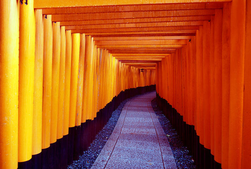 | รูปที่ 8 : เสาแดงๆ ของ Fushimi Inari Shrine นี่แหล่ะ ที่ใครหลายคนแวะเวียนมาถ่ายรูปกัน |