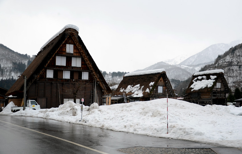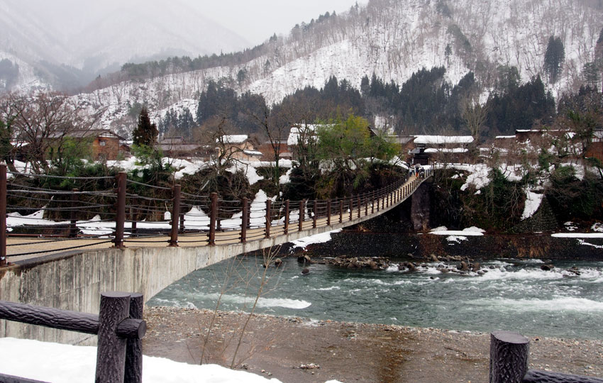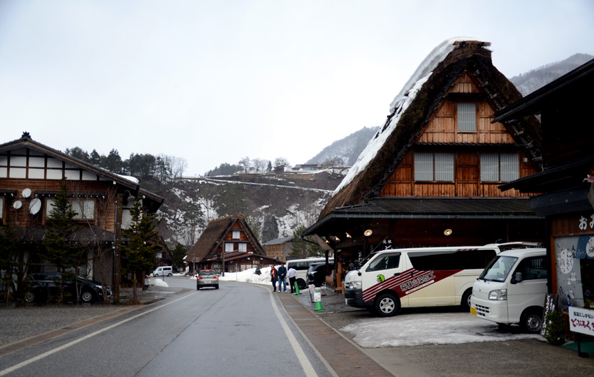พวกเราขนสัมภาระมาเก็บไว้ในรถแล้วขอยืมรองเท้ายางกันหิมะกับเจ้าของบ้าน ใส่เดินเที่ยวภายในหมู่บ้านแห่งนี้ ที่นี่เป็นหมู่บ้านเล็กๆ ในชนบทของญี่ปุ่น ผมคิดว่า เสน่ห์ของ Shirakawago คงหนีไม่พ้นบ้านชาวนาหลังคาสไตล์ Gassho-zukuri คล้ายๆ กับใบจากบ้านเราและบรรยากาศความเป็นธรรมชาติ บนถนนเราจะเจอนักท่องเที่ยวซะส่วนใหญ่ พากันมาเดินเล่น ถ่ายรูปเก็บความประทับใจเอาไว้ พวกเรามีเวลาเดินไม่มาก จึงเดินไปที่สะพานคนเดินข้ามแม่น้ำที่ไหลตัดผ่านหมู่บ้านแห่งนี้ อีกฝั่งหนึ่งของแม่น้ำเป็นที่ตั้งของสำนักงาน Information center ที่พวกเราแวะไปเมื่อวานนี้นั่นเอง จากนั้นจึงเดินไปบนถนนสายหลักของหมู่บ้าน ซึ่งมีร้านขายของที่ระลึกให้ซื้อติดไม้ติดมือกลับมา นอกจากนั้นที่นี่ก็มีพิพิธภัณฑ์ชาวนาอยู่หลายแห่ง ได้แก่ The heritage museum, Myozenji museum หรือ Wada house แต่เก็บค่าธรรมเนียมเข้าชม 300 เยนจึงขอผ่านดีกว่า คงไม่เหมาะกับคนจากประเทศที่ทำนาเป็นหลักอย่างเราๆ เข้าไปดู