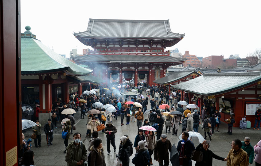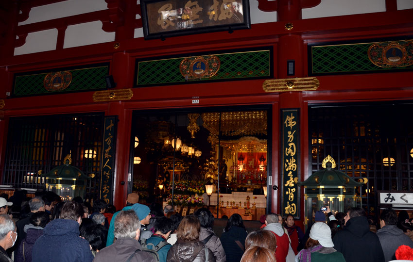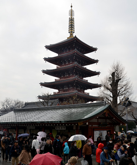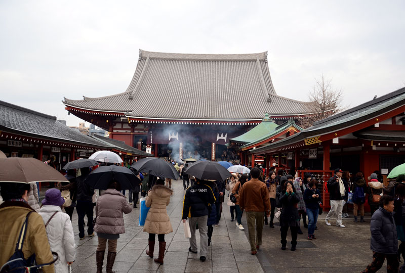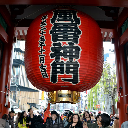 วันนี้พวกเรามีเวลาเที่ยวในโตเกียวประมาณ 4 ชั่วโมงเท่านั้น ก่อนจะขึ้นรถไปที่สนามบินนาริตะ เพื่อเดินทางกลับในตอนเย็น เรานั่งรถไฟสาย Oedo Line ที่สถานี Higashi-shinjuku (E02) ไปลงที่สถานี Ueno-okachimachi (E9) แล้วเปลี่ยนขึ้นรถไฟสาย Ginza Line (G15) ไปลงที่สถานี Asakusa (G19) เดินขึ้นมาจากสถานีก็จะเห็นตึกอุนจิ แล้วเดินต่อมาอีกนึดก็จะเห็นโคมแดงลูกโตตั้งอยู่หน้าวัดเซ็นโซจิหรือวัดอาซากุซะ วัดเก่าแก่ในมหานครโตเกียว
