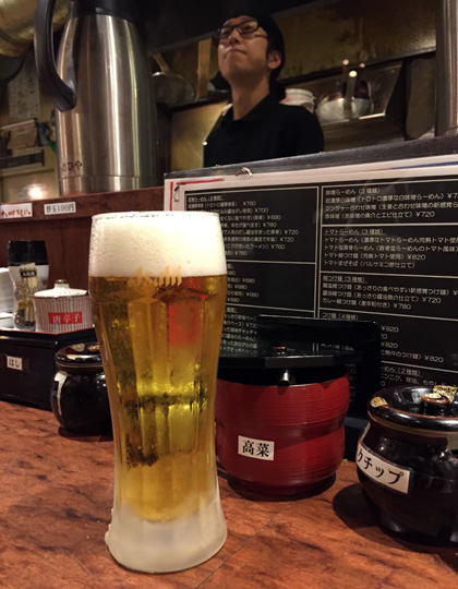 ยังครับ ยังนอนไม่ได้ หลังจากเดินทางมาเหนื่อยๆ แต่ท้องมันว่าง นอนไม่หลับหรอกครับ เก็บกระเป๋าเข้าที่พักเสร็จ น้าปานก็พาไปกินราเม็งร้านใกล้ๆ ที่อยู่ฝั่งตรงข้าม ไม่แน่ใจว่าร้านนี้เปิดกี่โมง (น่าจะเป็นช่วงบ่ายๆ ) แต่ปิด 6 โมงเช้าเลย ร้านนี้ได้ลงหนังสือด้วย บรรยากาศของร้านแต่งสไตล์ญี่ปุ่น หน้าตาของราเม็งร้านนี้ไม่ค่อยเหมือนในบ้านเราเท่าไหร่ แต่พอได้ชิมน้ำซุปเท่านั้นแหล่ะ ตาโตเลย อร่อยมากกก หม้อน้ำชุปร้านราเม็งในญี่ปุ่นแต่ละร้านนี่ ใบเบอเริ่มเทิ่ม ต้มกันเป็น 10 ชั่วโมงถึงได้รสชาติอุมาหมิ และที่ผมชอบร้านราเม็งร้านนี้อีกอย่าง คือ ทางร้านมีเครื่องปรุงพวกพริก กระเทียมเจียว หอมเจียวให้ตักตามสบายตามใจชอบ กินพร้อมกับเบียร์ Asahi แล้วรู้สึกฟิน บินมาถึงโอซาก้าจริงๆ ชามเดียวจอด อิ่มมากเลย รู้และว่าทำไมผู้หญิงญี่ปุ่นไม่ค่อยกินราเม็งกัน เพราะมันเยอะจนกินหมดนี่เอง ตรงนี้ต้องขอขอบคุณน้าปานด้วยครับ นอกจากไปรับพวกเราถึงสนามบิน จัดหาที่พักให้ แล้วยังมาเลี้ยงราเม็งสุดยอดโดนใจกับเบียร์อาซาฮีอีก ทำให้การเดินทางในคืนแรกของเรา สะดวกและอิ่มสบายท้องอีกด้วย