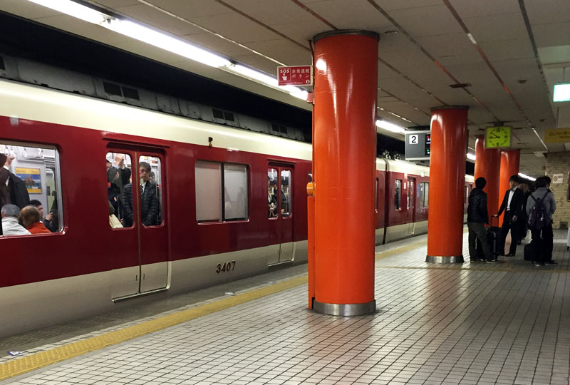 | รูปที่ 1 : บริเวณชานชลาของสถานี Nippombashi ระหว่างรอรถไฟ Hanshin |