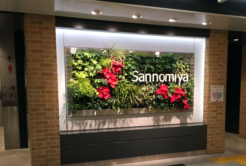 | รูปที่ 3 : ป้ายสถานี Sannomiya สวยงามทีเดียว ท่าทางมีคนแวะมาเที่ยวในเมืองโกเบเยอะ |