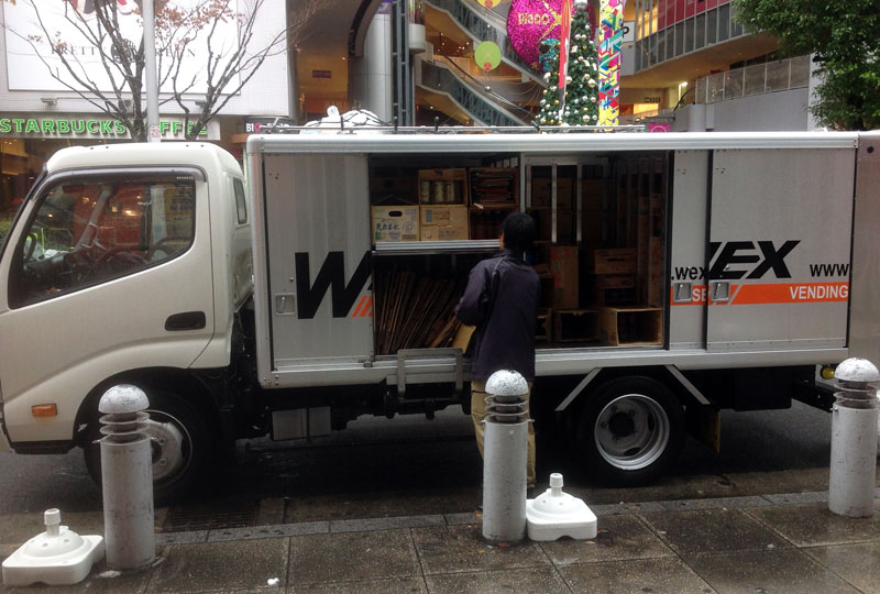 | รูปที่ 1 : ช่วงเช้ารถบรรทุกเครื่องดื่มกระป๋องจะมาเติมกระป๋องเครื่องดื่มให้เต็มตู้หยอดเหรียญ |
