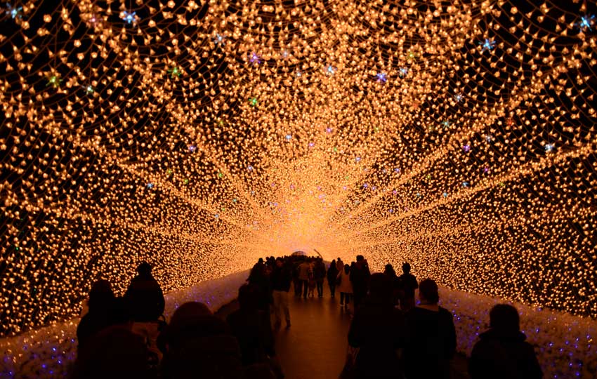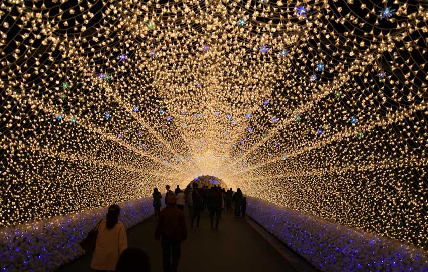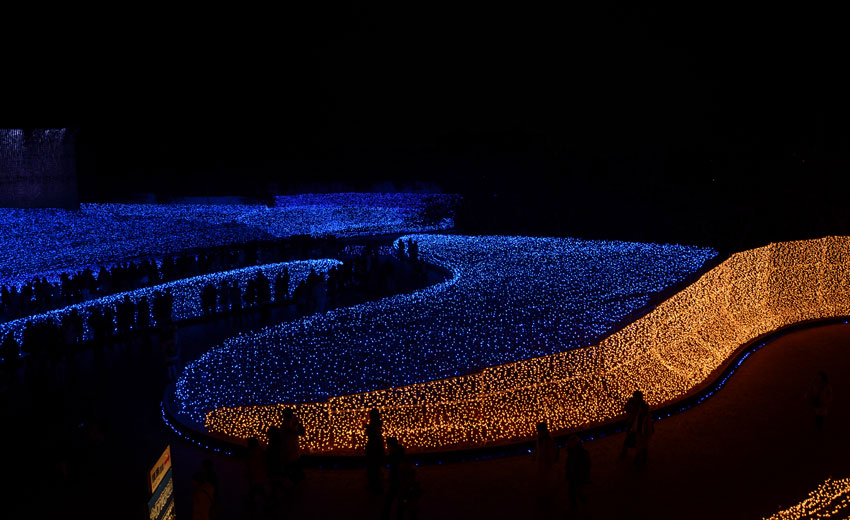 Nabana No Sato เป็นชื่อของสวนดอกไม้ที่อยู่ในเมือง Nagashima ซึ่งเป็นเมืองเล็กๆ อยู่ในเขตจังหวัดมิเอะ (Mie) แต่ถ้าดูในแผนที่จะอยู่ใกล้กับเมืองนาโกย่า (Nagoya) มากกว่า ที่นี่จะจัดงานแสดงไฟในฤดูหนาวระหว่างเดือนตุลาคมถึงเดือนมีนาคมของทุกปี (สามารถดูรายละเอียดได้ที่ http://www.nagashima-onsen.co.jp/index.html หรือสอบถามไปที่ JNTO บ้านเราก็ได้ครับ) ราคาตั๋วเข้าไปภายในงาน 2,100 เยน (1,000 เยนสำหรับเด็ก) หลังจากซื้อตั๋วแล้วเราจะได้คูปองเงินสดคนละ 1,000 เยน เอาไปใช้ในร้านอาหารหรือใช้เข้าภายในอาคารที่จัดโชว์ดอกไม้ต่างๆ