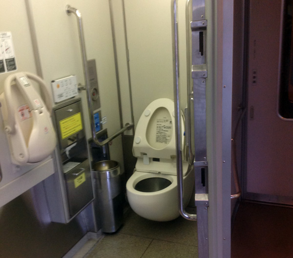 | รูปที่ 5 : ห้องน้ำในรถไฟน่านั่งมาก ฝารองนั่งอุ่น แถมยาว 3-4 เท่าของรถไฟบ้านเรา |