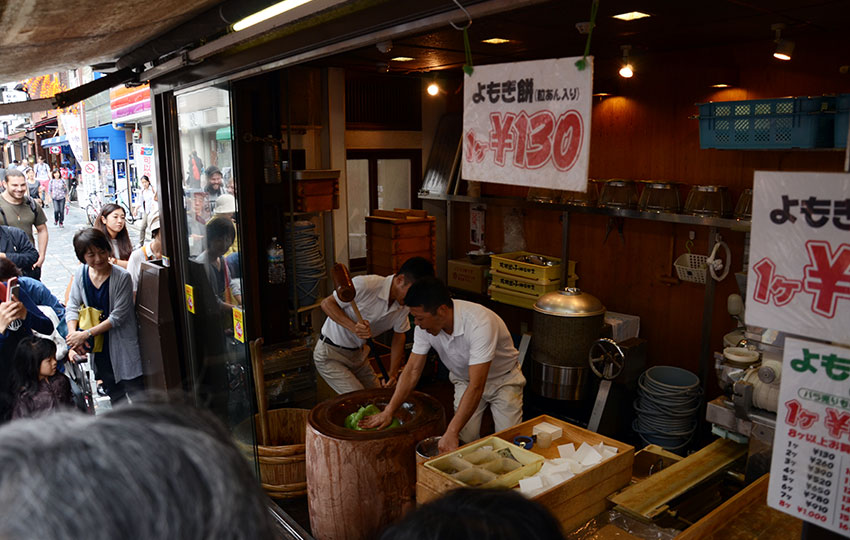 | รูปที่ 14 : พ่อค้าโมจิร้านนี้ นอกจากขายโมจิและทำโมจิแล้ว ยังต้องคอยโบกรถและดูแลการจราจรหน้าร้านอีกด้วย |