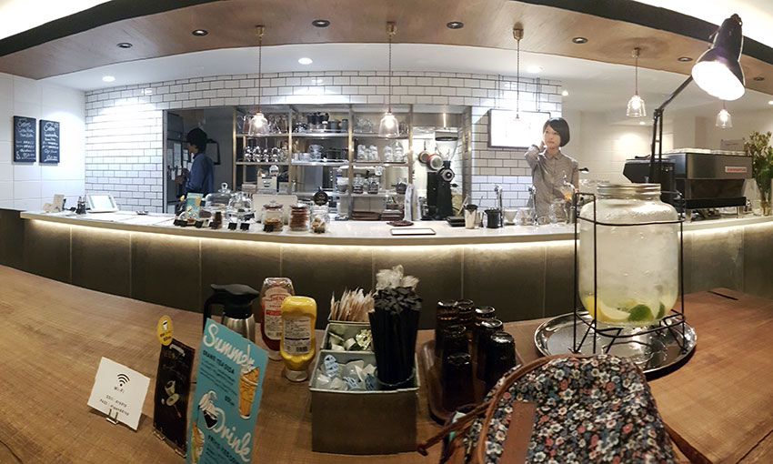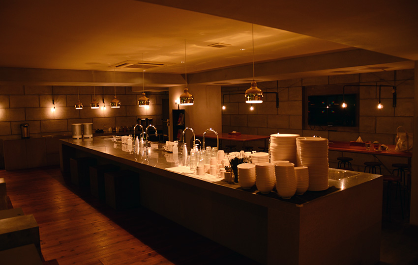 | รูปที่ 15 : ภายในห้องครัวของ Piece Hostel Sanjo เปิดไฟหลอดไส้สีเหลืองแบบนี้ตลอด 24 ชั่วโมง |