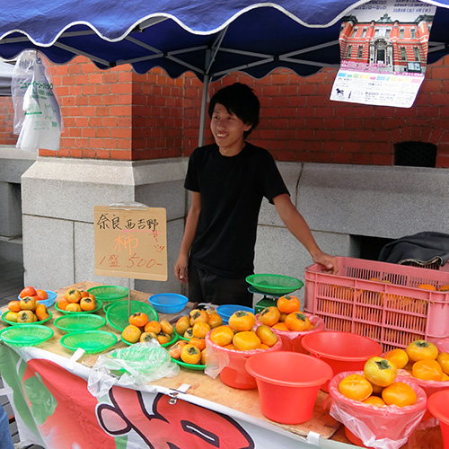 ผมแวะซื้อลูกพลับกับพ่อค้าหนุ่มตั้งแผงขายหน้าโบสถ์ เราคุยกันไม่เข้าใจ แต่ก็รู้สึกได้ถึงความเป็นกันเองและเอาใจใส่ลูกค้า น้องเค้าปอกให้ชิมกันสดๆ ขายถูกมาก ตะกร้าเล็กมีประมาณ 8-9 ลูก ราคา 500 เยน แล้วยังแถมให้นักท่องเที่ยวแปลกหน้า ต่างภาษา อีก 2 ลูก หวานกรอบอร่อยดี รสไม่ฝาดเหมือนบ้านเรา พวกเรากินลูกพลับตลอด 2 วันที่อยู่ในเกียวโต ผมไปเห็นราคาลูกพลับที่วางขายใน Supermarket ช่วงท้ายๆ ของทริปนี้ ตอนอยู่ในเมืองโอซะกะ รู้สึกเหมือนกับว่า น้องเค้าให้ลูกพลับเรากินฟรีอ่ะ