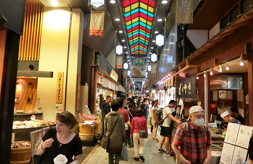เจ้าหน้าที่ Hostel แนะให้พวกเรามาเดินเล่นในตลาดสด Nishiki กัน ตอนแรกผมก็ไม่รู้ว่า มันเป็นยังไง พอได้มาเดินแล้วติดใจเลยครับ บรรยากาศคึกคักมาก ร้านขายกุ้งหอยปูปลาสดๆ ลูกค้าซื้อแล้วแร่กันทันที ตะเกียบมีให้พร้อม โซ้ยกันหน้าร้านเลย ของสดๆ กินกันสดๆ หรือบางร้านขายของสด มีครัวปรุงสุกเสร็จพร้อมกินได้ทันที ถึงแม้ว่าที่นี่จะเป็นตลาดสด แต่ไม่มีกลิ่นคาว และยังสะอาดน่าเดินด้วย