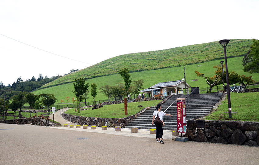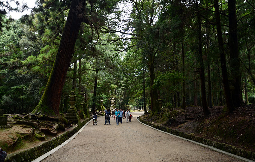 ออกจากศาลเจ้า ก็เดินไปตามทางเดินใน Nara park ช่วงหน้าฝนบรรยากาศที่นี่สดชื่น ทุ่งหญ้าเขียวสดมาก ถ้าจะซื้ออาหารเลี้ยงกวาง อย่าถืออาหารอยู่ท่ามกลางกวางฝูงใหญ่นะครับ อาจจะโดนกวางซึ่งเป็นสัตว์ป่า ทำร้ายเจ็บตัวได้ ค่อยๆ ป้อนอาหารใส่ปากกวางที่อยู่ 1-2 ตัว จะปลอดภัยกว่าครับ