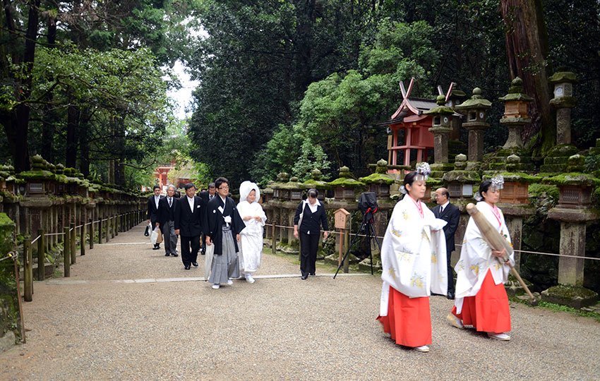หลังจากไหว้ศาลเจ้าประจำเมือง เอาฤกษ์เอาชัย ผมก็ไปเดินเล่นดูศาลาใกล้ๆ พอดีไปเจอคนญี่ปุ่นกำลังทำพิธีแต่งงาน ตามขนบธรรมเนียมโบราณ แต่งกันเต็มยศเลย ตอนแรกไม่แน่ใจว่า เป็นงานมงคลป่าว เพราะว่าเห็นคนส่วนใหญ่ใส่ชุดสีดำมาทำพิธีในศาลเจ้ากันครับ