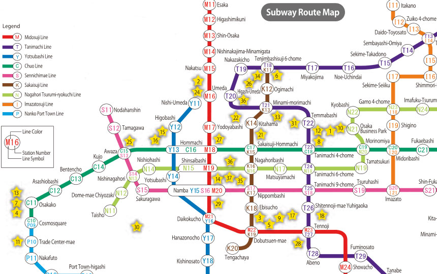 | รูปที่ 1 : ส่วนหนึ่งของแผนที่ Subway Route ในเมืองโอซะกะ |