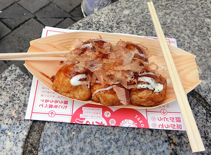 | รูปที่ 8 : ร้านทาโกยากิดังๆ ขายกันตกราคาลูกละ 80 เยน (เกือบ 30 บาท) |