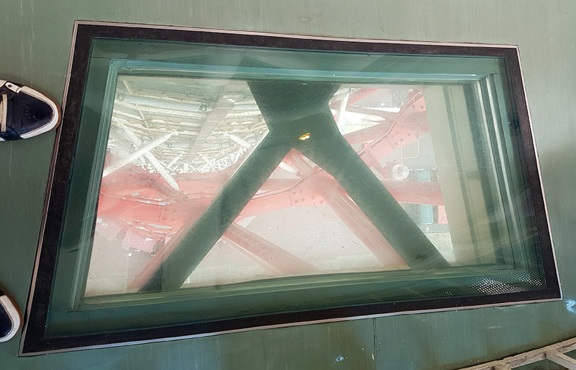 | รูปที่ 10 : ชั้นล่างสุดของจุดชมวิวบน Kobe Port Tower เป็นพื้นกระจกไฟฟ้า (บานเล็กๆ) |