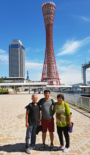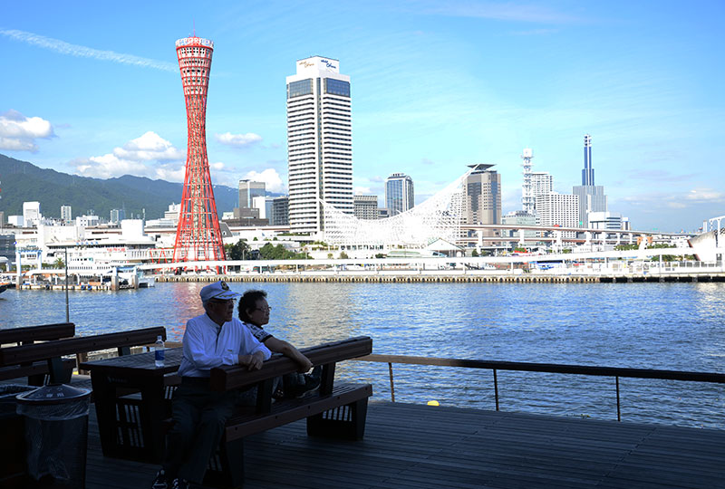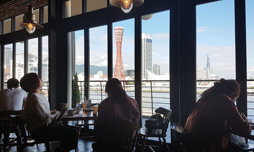 เดินต่ออีกไม่ไกลก็ถึงอ่าวโกเบ หอคอย Kobe Port Tower ตั้งอยู่โดดเด่น ท้องฟ้ามีเมฆมาก แต่ก็ฟ้าค่อนข้างใสพอสมควร เราเดินไปขึ้น Kobe Port Tower กันโดยตีตั๋วคนละ 700 เยน ขึ้นลิฟท์ไปบนหอคอย สามารถชมวิวได้รอบ บนหอคอยสามารถเดินได้ 3-4 ชั้น ทั้งหมดมีกระจกกั้นโดยรอบ ติดแอร์ ไม่สามารถสัมผัสอากาศด้านนอกได้ มีบางโซนเป็นร้านอาหาร ให้นั่งกินไปชมวิวอ่าวโกเบไปด้วย