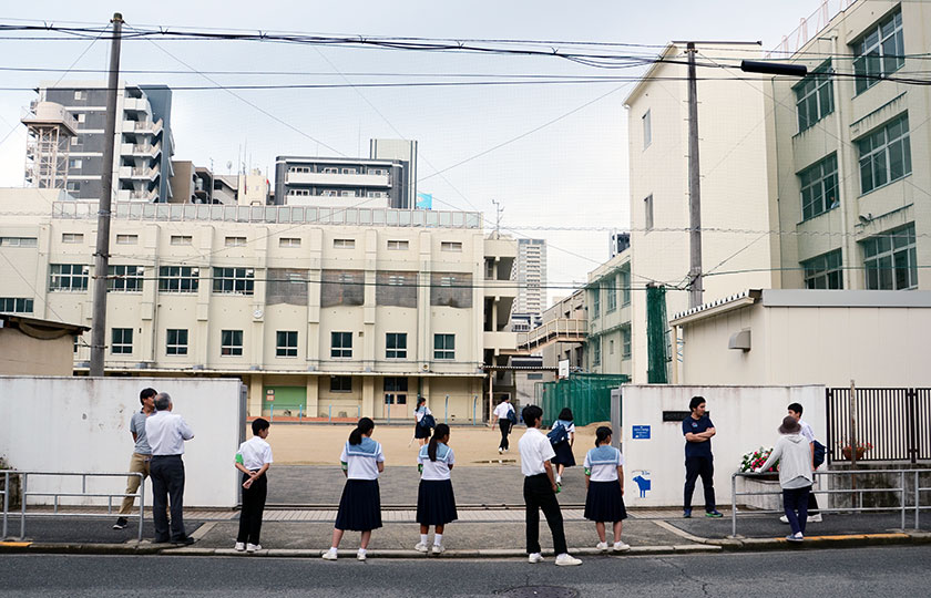 | รูปที่ 1 : หน้าโรงเรียนแห่งหนึ่งในเมืองโอซะกะ ไม่ไกลจากสถานีรถไฟ Sakuragawa |