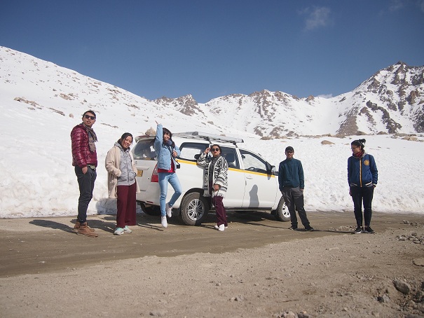 จริงๆจากเมืองเลห์ขึ้นมาบนkhardunglaระยะทางเเค่30กิโลกว่าๆเอง แต่ด้วยต้องขึ้นเขาและทางบางช่วงเป็นลูกรังบวกกับต้องขับระวังเพราะลื่นหิมะเลยใช้เวลาหลายชม. หลังจากเราผ่านถนนคดเคี้ยวลงสู่พื้นราบเพื่อไปยังจุดหมายถัดไประหว่างทางก็อย่าหลับเพราะวิวระหว่างทางเปลี่ยนทุก3นาที(อันนี้เว่ออไป) เราจะเจอฝูงYakหรือจามารี แพะ แกะ วัว ปาร์ตี้เริงร่ากันอยู่บนเนินเขาหรือเเม้เเต่Marmotก็อาจจะโผล่ออกมาภูเขาหินมาโบกมือให้เราก็เป็นได้เหมือนเห็นสัตว์ป่าในธรรมชาติอย่างกะซาฟารีเวิร์ลในแอฟริกา(เว่อม่ะ5555)