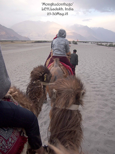 เย็นวันนั้นเราออกจากTurtukย้อนกลับมานอนnubra และจะเเวะขี่อูฐที่ทะเลทรายซ่าฮาร่า(ไม่น่าใช่)