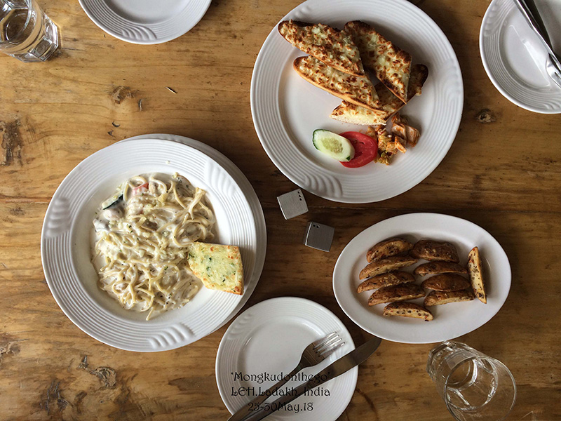 ร้านบรรยากาศดีเลยเหมือนร้านอาหารดีๆแบบopen air อาหารที่ขายก็มีครบทั้งอินเดียน อิตาเลียน ลาดัก แต่มื้อนี้ขอเจริญอาหารหน่อยและอยากได้โปรตีนจากเนื้อสัตว์เข้าร่างกายมากกกกก ขอเป็นอิตาเลียนแล้วกัน แต่แล้วโชคก็ไม่เข้าข้างคนจะได้บุญอะเนอะวันนี้วิสาขบูชาทั้งเมืองเป็นมังสวิรัติจ้ะNo meat!!!T^T